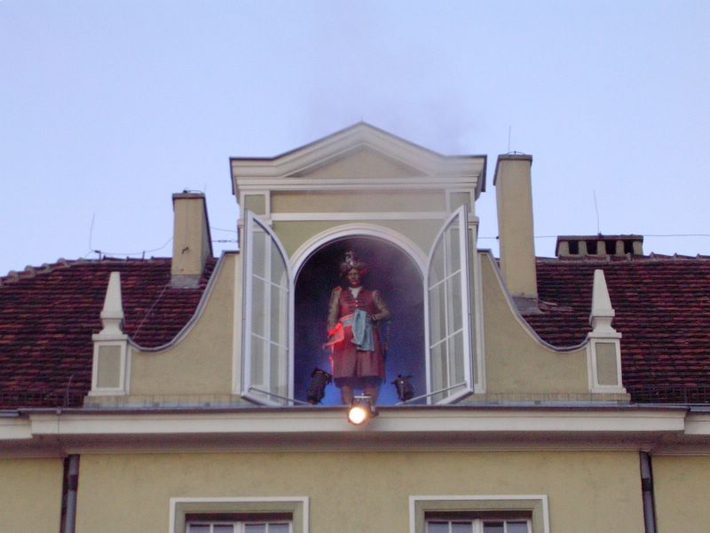 Bydgoszcz w lipcu'06 -- Pan Twardowski na Starym Rynku - pokazuje się dwa razy w ciągu dnia 9:15, 21:15