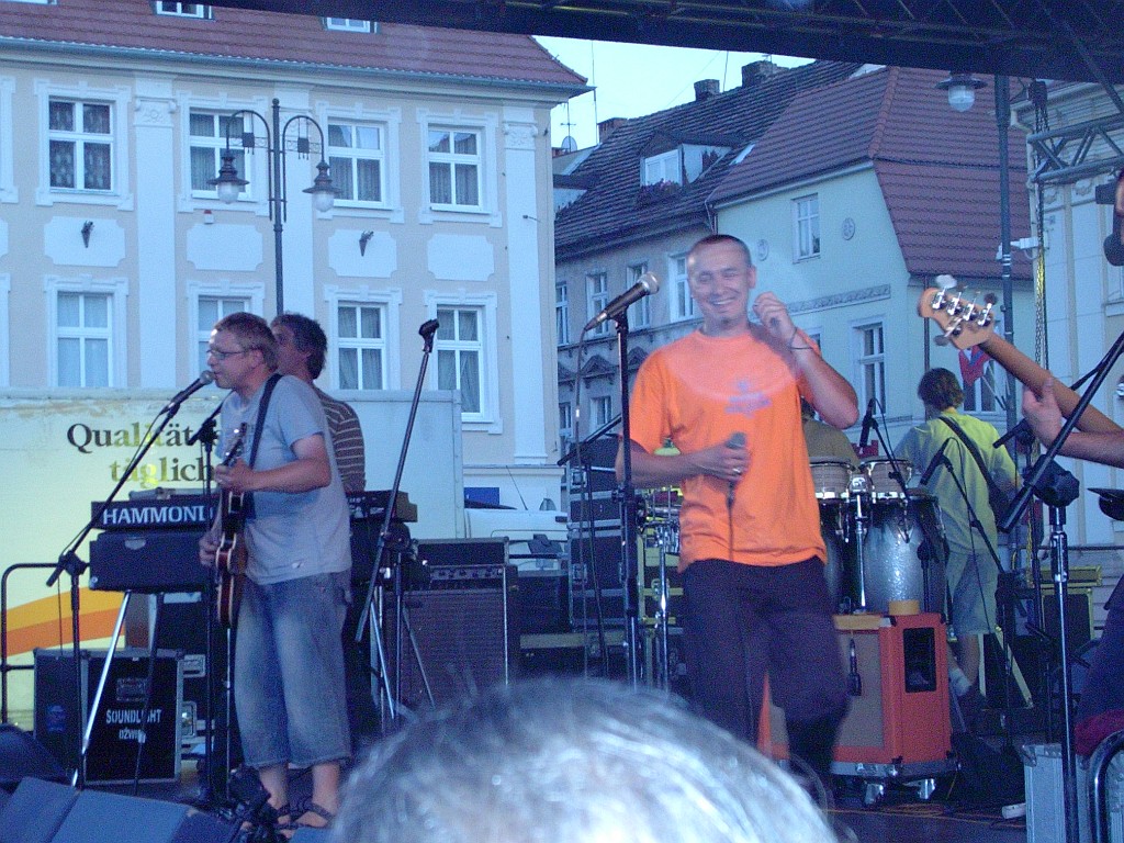 zaspiewał w Węgliszku a nie na scenie bo padało. To fragmenty z ich tekstów, a muzyka … trudno mi ocenić, trochę jazz’u, pop’u, reggae i rock’a, chyba taka jest. Jak zaczęli, myślę sobie, o co tu chodzi – każdy gra swoje, potem dopiero się osłuchałem i było ok.